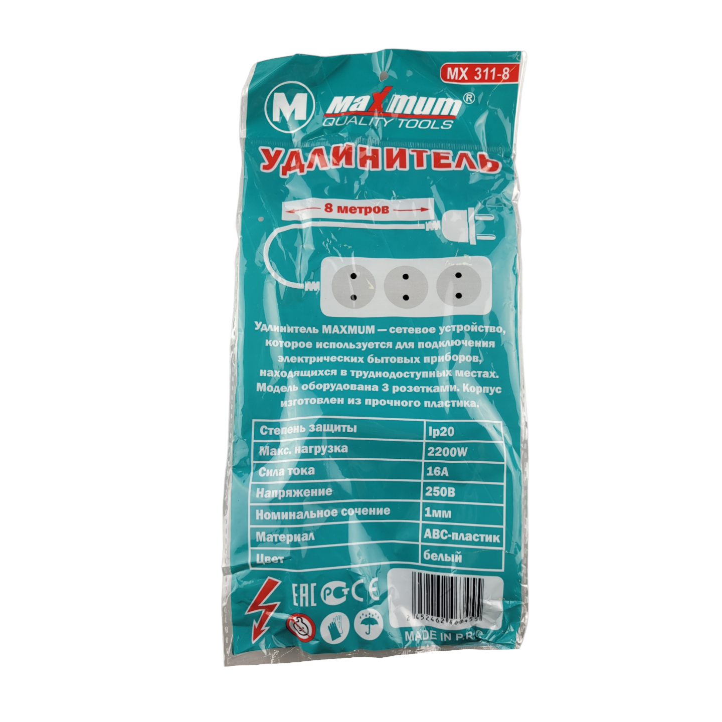 [NAME] => Удлинитель с заземлением 2 м, плоский, 3 розетки EU_UK_US, 5 USB портов,Type C,T05, "MAXIMUM" MX 148