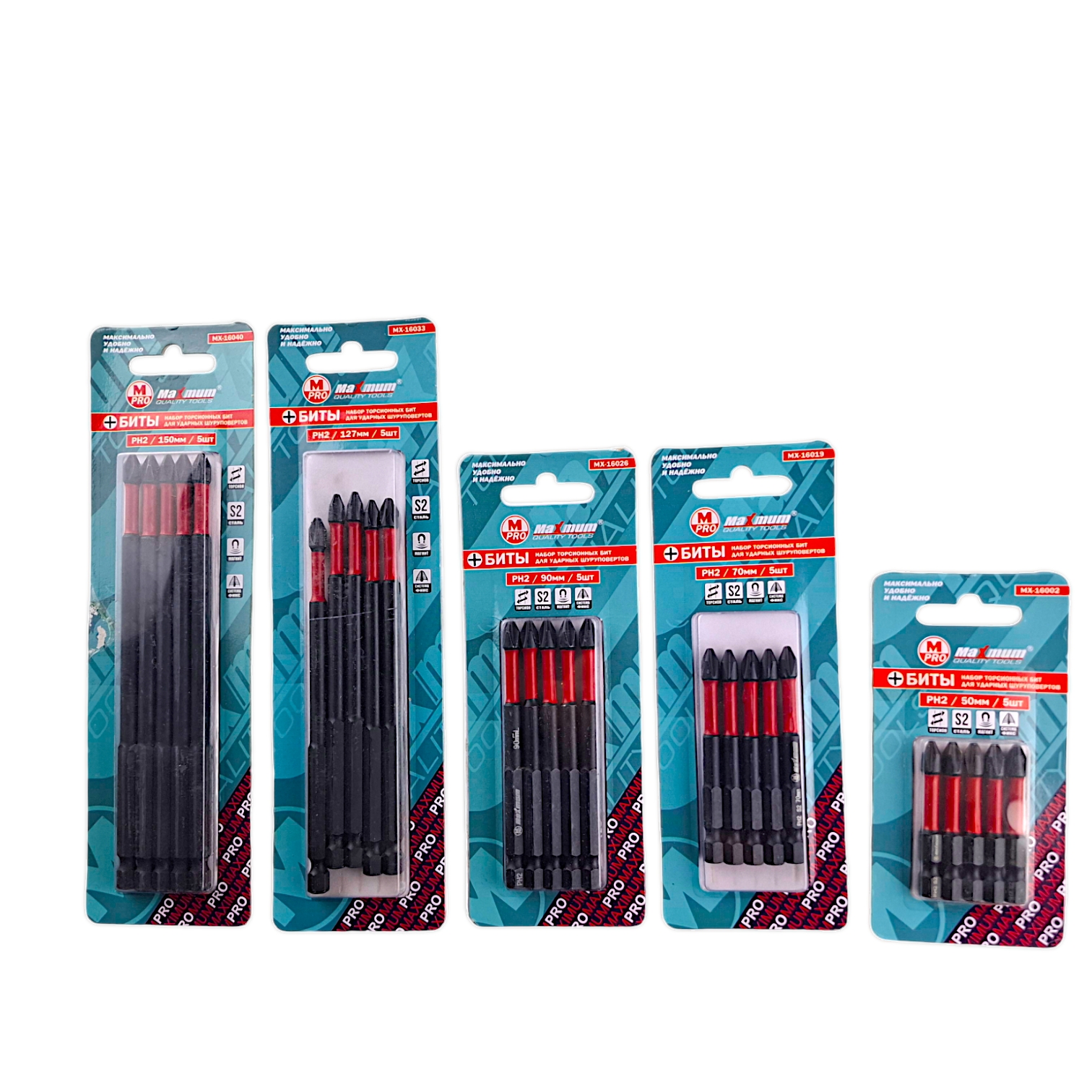 Биты изготавливаются из стали S2. Данные биты выдерживают существенный крутящий момент и могут работать даже на ударных шуруповертах.